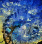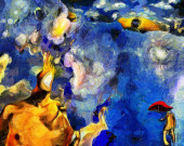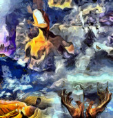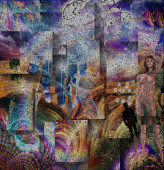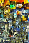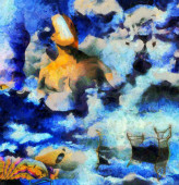 Złożony surrealistyczny obraz. Ludzkie sny i myśli.