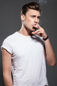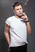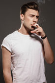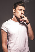 Zdjęcie "przystojny, młody człowiek palenia papierosów" może być wykorzystywane do celów osobistych i komercyjnych zgodnie z warunkami zakupionej licencji Royalty-free. Obraz jest dostępny do pobrania w jakości wysokiej rozdzielczości do 5760x3840.