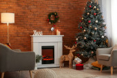 Zdjęcie "Wnętrze salonu urządzone na Boże Narodzenie z kominkiem" może być wykorzystywane do celów osobistych i komercyjnych zgodnie z warunkami zakupionej licencji Royalty-free. Obraz jest dostępny do pobrania w jakości wysokiej rozdzielczości do 5760x3840.
