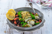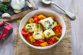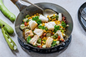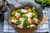 Dorsz, kukurydza cukrowa i suszonka bób - widok z góry