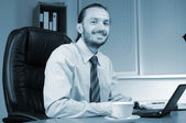 młody biznesmen, pracuje w biurze, w jego miejscu pracy.
