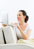 atrakcyjny dziewczynka kaukaski, siedząc na podłodze