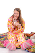kobieta w ciąży dość brunet z zabawkami Miś na białym tle