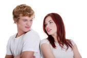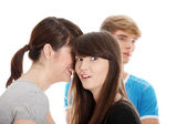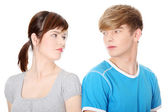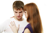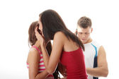 smutna dziewczyna brunetka zazdrości o jej przyjaciel. na białym tle.