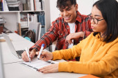 Zdjęcie "Wielu etnicznych białych i Afroamerykanów nastolatek koledzy z klasy robi ćwiczenia i pracuje razem w klasie gimnazjum" może być wykorzystywane do celów osobistych i komercyjnych zgodnie z warunkami zakupionej licencji Royalty-free. Obraz jest dostępny do pobrania w jakości wysokiej rozdzielczości do 5760x3840.