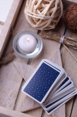 Koncepcja spa. Płonące białe świece na ręczniku. Świece, soczyste, zaprawa na szarej ścianie.