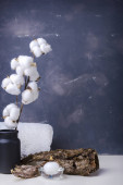 Zdjęcie "Koncepcja spa. Płonące białe świece na ręczniku. Świece, soczyste, zaprawa na szarej ścianie." może być wykorzystywane do celów osobistych i komercyjnych zgodnie z warunkami zakupionej licencji Royalty-free. Obraz jest dostępny do pobrania w jakości wysokiej rozdzielczości do 5760x3840.