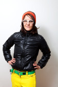 młoda kobieta słuchania muzyki w słuchawkach. łapka.