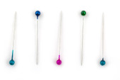 Kolorowe szpilki do szycia izolowane na białym tle