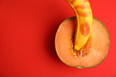 Połowa melona na dwóch tonach tła, miejsce na tekst