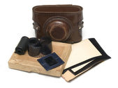czarne skórzane spodnie, czarny skórzany pas i okulary na białym tle