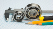 zaciski, łożyska i placu na tle papier milimetrowy