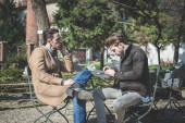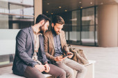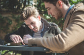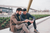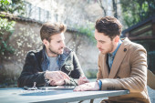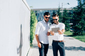 dwóch biznesmenów model młody przystojny mody przy użyciu komputera typu tablet