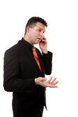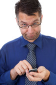 starszy człowiek biznesu z inteligentnych telefonów na białym tle