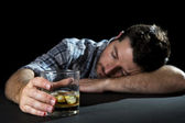 uomo d'affari ubriaco sprecato e la bottiglia di whisky nell'alcolismo
