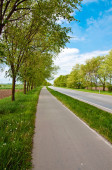 Wiersz drzew na malejącej drodze wiejskiej w piękny wiejski dzień