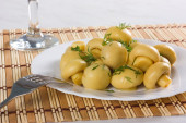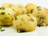 ziemniaki gotowane z małżami i oliwy z oliwek z vinaigrette.