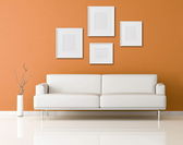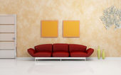 czerwony i biały sofa w pomarańczowy pokój dzienny