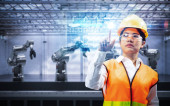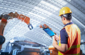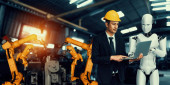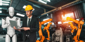 Zdjęcie "Technik lub inżynier pracuje z robotem renderującym 3d w fabryce" może być wykorzystywane do celów osobistych i komercyjnych zgodnie z warunkami zakupionej licencji Royalty-free. Obraz jest dostępny do pobrania w jakości wysokiej rozdzielczości do 5760x3840.