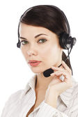 piękne klienta usługi operatora kobieta z zestawu słuchawkowego