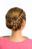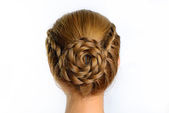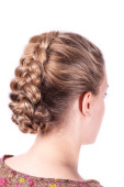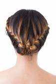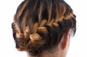 długi warkocz kreatywnych brązowe włosy styl na białym tle