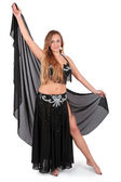 atrakcyjna tancerka brzucha z długimi blond włosami