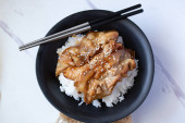 rozmazana wieprzowina smażona w japońskim sosie teriyaki