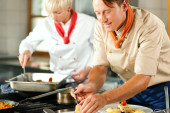 dwóch szefów kuchni w pracy zespołowej - człowiek