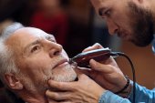Zdjęcie "Afrykański amerykański charakteryzator w masce medycznej i rękawiczkach lateksowych nakładających proszek do twarzy na biznesmena w pobliżu rozmytego aparatu cyfrowego" może być wykorzystywane do celów osobistych i komercyjnych zgodnie z warunkami zakupionej licencji Royalty-free. Obraz jest dostępny do pobrania w jakości wysokiej rozdzielczości do 5760x3840.