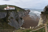Zumaia, Hiszpania - 14 sierpnia 2021: Kościół San Telmo i klify Flysch na wybrzeżu Zumaia