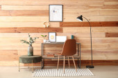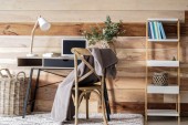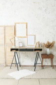 Wnętrze stylowego pokoju z nowoczesnym miejscem pracy