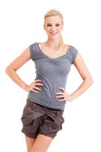 piękna dziewczyna w szorty i koszulkę na białym tle