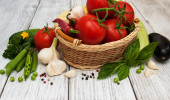 kompozycje różnych warzyw dojrzałe w studio na płyty bambusowe