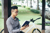 Zdjęcie "Student czyta książkę." może być wykorzystywane do celów osobistych i komercyjnych zgodnie z warunkami zakupionej licencji Royalty-free. Obraz jest dostępny do pobrania w jakości wysokiej rozdzielczości do 5760x3840.