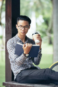 Zdjęcie "Młody człowiek czyta książkę." może być wykorzystywane do celów osobistych i komercyjnych zgodnie z warunkami zakupionej licencji Royalty-free. Obraz jest dostępny do pobrania w jakości wysokiej rozdzielczości do 5760x3840.