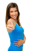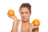 Szczęśliwa kobieta trzymając pomarańczowe ze słomy