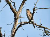 Bluebird na gałęzi: Młody mężczyzna Eastern Bluebird usiadł na jednej gałęzi przeciwko jasnemu błękitnemu niebu