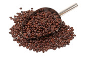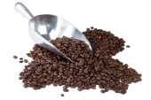 metalowa miarka częściowo pochowany w sterty ziarna kawy