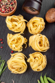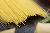 Zdjęcie "Spaghetti i składniki na starym i zabytkowym drewnianym stole. Kuchnia włoska. Smaczne jedzenie.." może być wykorzystywane do celów osobistych i komercyjnych zgodnie z warunkami zakupionej licencji Royalty-free. Obraz jest dostępny do pobrania w jakości wysokiej rozdzielczości do 5760x3840.
