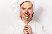 portret młodej kobiety kucharz z pomidorĂłw