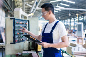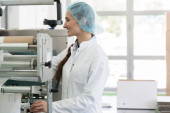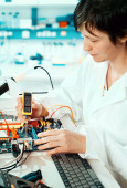Robotnik w elektronice produkującej elementy lutownicze