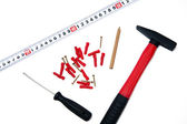 śrubokręt i śruby z dovels na białym tle na białym tle