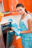 piękna kobieta brunetka w kuchni do pieczenia ciasteczek.
