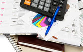 upadłości dokument z rachunków, kart kredytowych, kalkulator i pióra