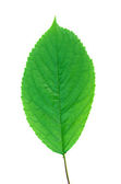 jeden świeży liść wyizolowany na tle. Widok z góry