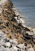 Duże kamienie zbliżenie w wodzie morskiej latem na plaży na tle morza