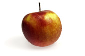 zgniłe jabłko na białym tle. Poziome zdjęcie, zbliżenie. Zepsute owoce.