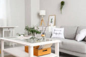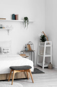Wnętrze stylowego pokoju z wygodnym łóżkiem