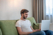 Zdjęcie "Mężczyzna siedzący przy laptopie i płacący kartą kredytową online" może być wykorzystywane do celów osobistych i komercyjnych zgodnie z warunkami zakupionej licencji Royalty-free. Obraz jest dostępny do pobrania w jakości wysokiej rozdzielczości do 5760x3840.