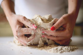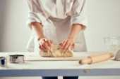 szef kuchni ugniatanie ciasta na stole kuchnia pieczenia profesjonalny